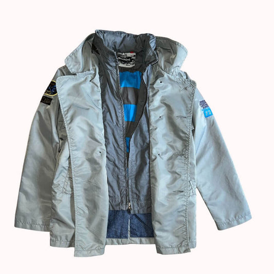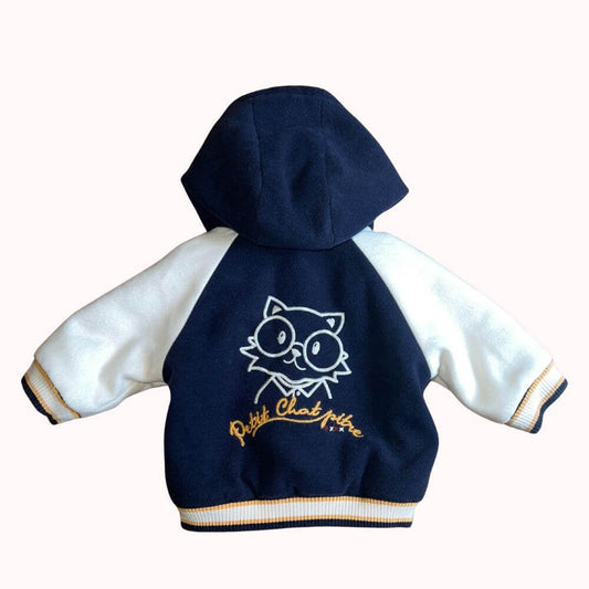 BLOUSON TEDDY BLEU MARINE ET BLANC À CAPUCHE -SERGENT MAJOR- 3 MOIS