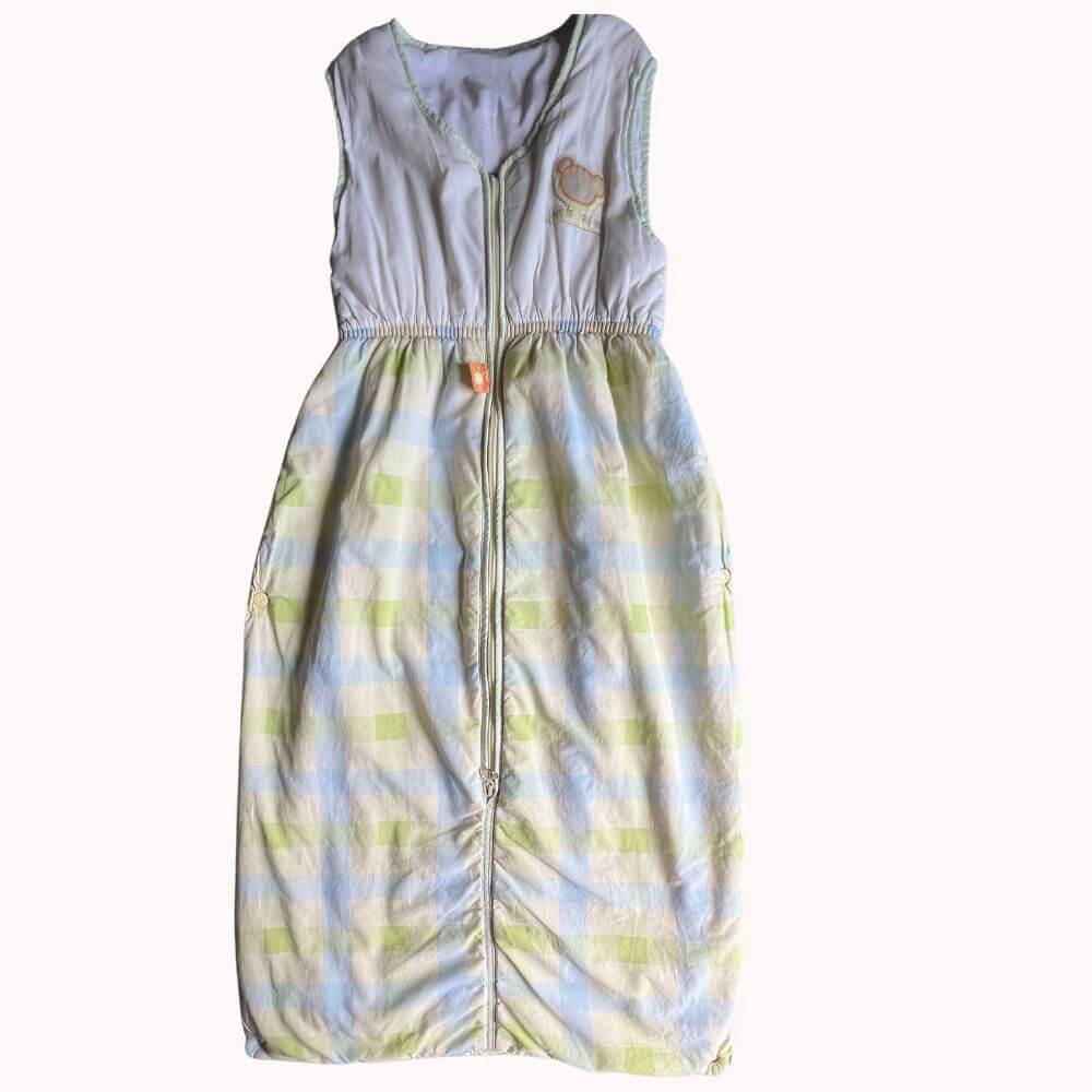 Cette douce gigoteuse, mesurant 90 cm, est idéale pour garder bébé bien au chaud pendant la nuit. Sans manches et avec une fermeture éclair centrale pour un enfilage facile, elle est conçue pour les petits de 12 à 24 mois. Son motif doux et ses couleurs tendres créent une atmosphère apaisante pour accompagner bébé dans ses rêves. Bien qu'elle présente un léger défaut, elle reste en bon état et parfaitement fonctionnelle pour les nuits de votre enfant.